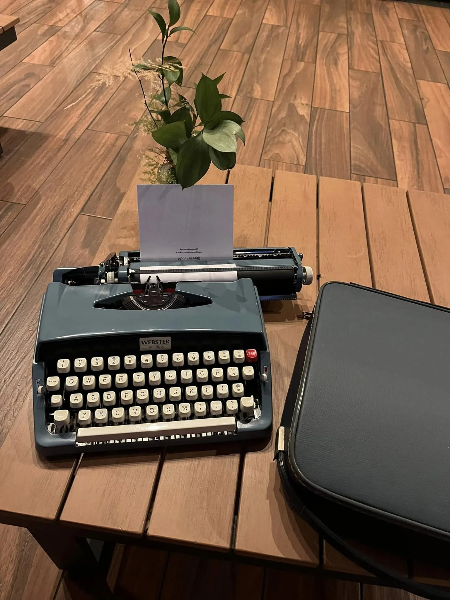 Personalized poems on demand: I have a typewriter, a bunch of markers, some blank postcards, and a way with words. If you have an upcoming event, I’d be happy to work with you to offer typed poems, postcard sentiments, and/or erasure poems on the spot. **FUN TYPOS are my signature!
